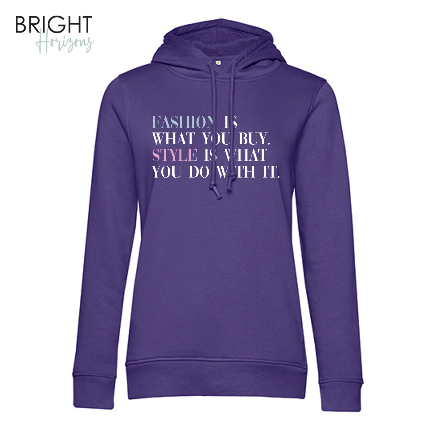 Dieser Hoodie aus Bio-Baumwolle bietet modernen Style, perfekten Sitz und eine feminine Silhouette. Die Seitentaschen und die Kapuze mit Single-Jersey-Futter sorgen für Komfort. Der modische Kordelzug setzt einen stylishen Akzent. 100% vegan – lässig und nachhaltig. Der hochwertige und stylische Front-Print rundet den Hoodie ab und wird somit zum Must-Have für jeden Kleiderschrank.